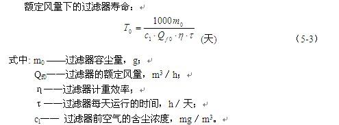 額定風(fēng)量下的過濾器壽命: