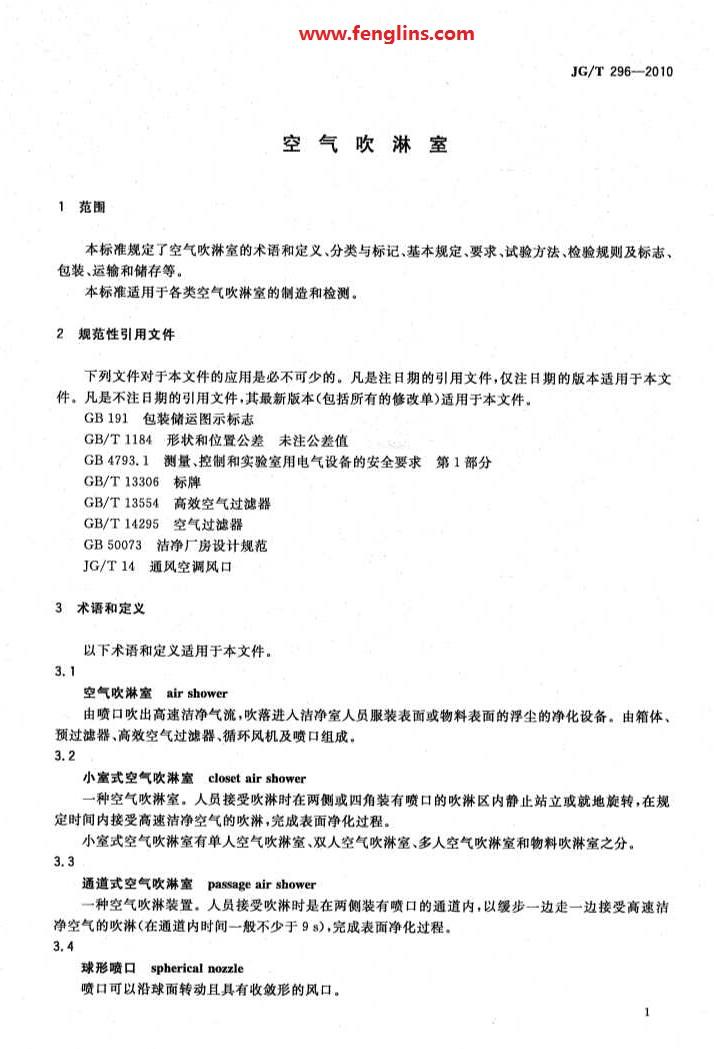 JG∕T 296-2010空氣吹淋室標準(風淋室行業規范)