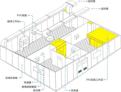 千級(jí)潔凈室系統(tǒng)示意圖: